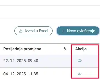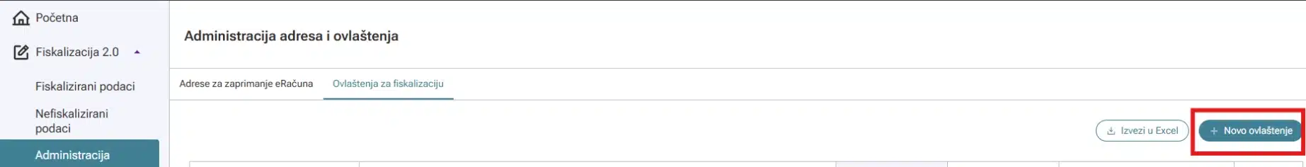 Isti postupak je potrebno napraviti za ovlaštenje za fiskalizaciju. Kliknite na gumb ‘Novo ovlaštenje’.