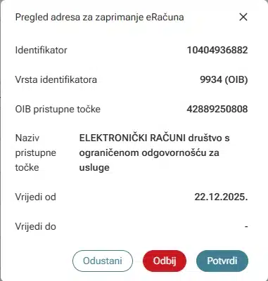 • potvrditi Elektronički računi d.o.o. (mer) kao adresu za zaprimanje računa