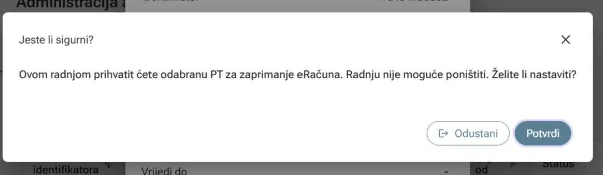 Adresu za zaprimanje eRačuna potvrđujete odabirom gumba „Potvrdi“